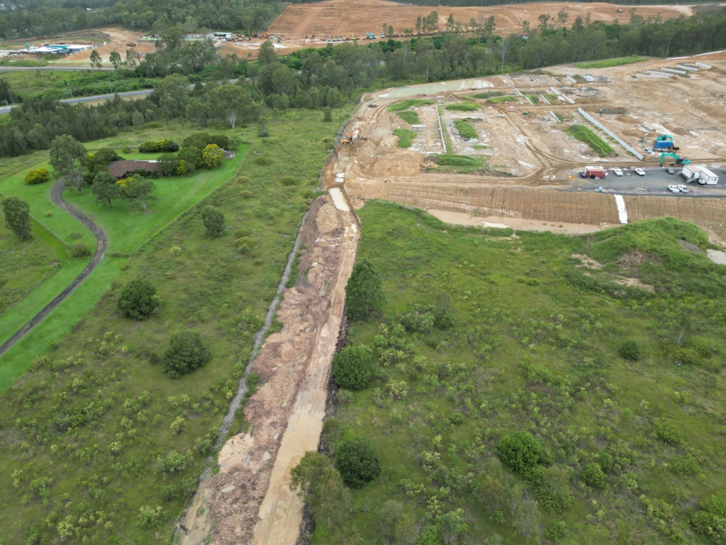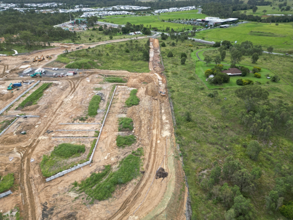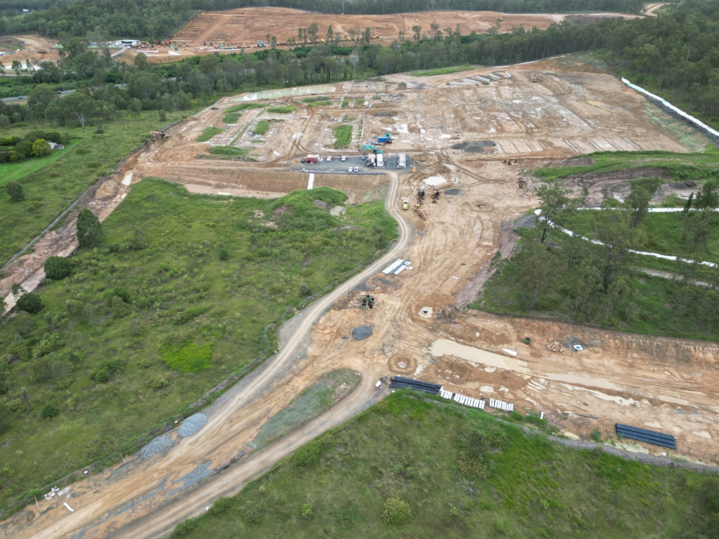In early March, Cyclone Alfred brought 350mm of rain to the area, prompting a temporary suspension of works as a precaution. Thanks to Winslow’s proactive approach, the site was well-prepared ahead of the storm, with ESC (erosion and sediment control) measures implemented and closely monitored to protect the environment and ensure a smooth return to work once conditions improved.